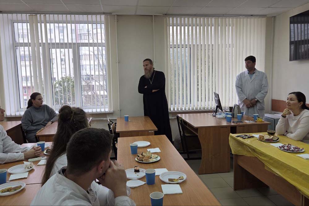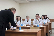 День начался с диалога на равных «Микробы, мораль и душевное чаепитие», гостем которого стал настоятель университетского домового храма Архангела Гавриила отец Роман (Пивнев). В уютной атмосфере состоялся необычный диалог о невидимых мирах, что живут внутри нас. Проводя смелые и поэтичные параллели с царством микробов, участники диалога исследовали хрупкую экосистему человеческой души. За чаепитием студенты постарались найти ответ на важный вопрос о том, что такое «духовный иммунитет» и как отличить здоровую мысль от «вируса»? – Сегодня у нас была возможность обсудить действительно важные аспекты, неразрывно связанные со всеми аспектами жизни врача: и работой, и семьёй, и учёбой. Студенты задавали отцу Роману очень много вопросов и в конце встречи отметили, что она была для них очень полезной. И преподаватели, участвовавшие в сегодняшнем чаепитии, сошлись во мнении, что обсуждение таких вопросов в студенческие времена могло бы уберечь их от многих ошибок, – рассказала заведующая кафедрой микробиологии и вирусологии с курсом клинической иммунологии Ксения Бочарова. Затем студенты посетили мастер-класс «Электрофорез – сделано!», организованный кафедрой биохимии под руководством Евгении Сладковой. Активное участие в работе мастер-класса приняли ассистент кафедры биохимии Анастасия Нечаева и студентка института фармации, химии и биологии НИУ «БелГУ» Ангелина Моркель. Образовательное событие стало настоящим научным праздником. Студенты получили возможность освоить несколько практических навыков из лабораторных исследований: приготовили растворы и агарозный гель с нуля, попрактиковались в работе с дозаторами и самостоятельно нанесли образцы в лунки и пронаблюдали, как на гель действует электрический ток. В завершение дня на кафедре патологии для студентов провели встречу с Владимиром Максимовым, фельдшером скорой помощи, кавалером медали Луки Крымского. На мероприятии, названном «От теории к практике» студенты получили возможность соприкоснуться с суровой и прекрасной реальностью медицины. На примерах из своей работы Владимир Владимирович показал, как упорство и любовь к профессии помогают пройти путь от новичка до специалиста, на которого равняются коллеги. 09.10.2025